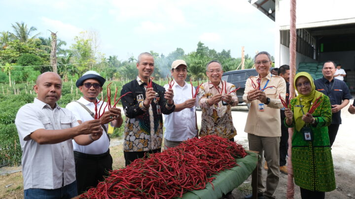 SMARTPEKANBARU.COM – Dalam upaya mendukung program Gerakan Nasional Pengendalian Inflasi Pangan (GNPIP) Provinsi Riau tahun 2025, Kepala Perwakilan Bank Indonesia Provinsi Riau, Panji Achmad, bersama Asisten II Sekretaris Daerah Provinsi Riau, Kepala Badan Pusat Statistik (BPS) Provinsi Riau, Deputi Regional CEO Bank Rakyat Indonesia (BRI) Pekanbaru, serta Kepala Balai Pelatihan dan Pemberdayaan Masyarakat Desa, Daerah Tertinggal, dan Transmigrasi (BPPMDDTT) Pekanbaru, melaksanakan panen perdana cabai merah di lahan Kelompok Tani Jaring Mas Sejahtera di Desa Pulau Birandang, Kecamatan Kampa, Kabupaten Kampar, Riau .